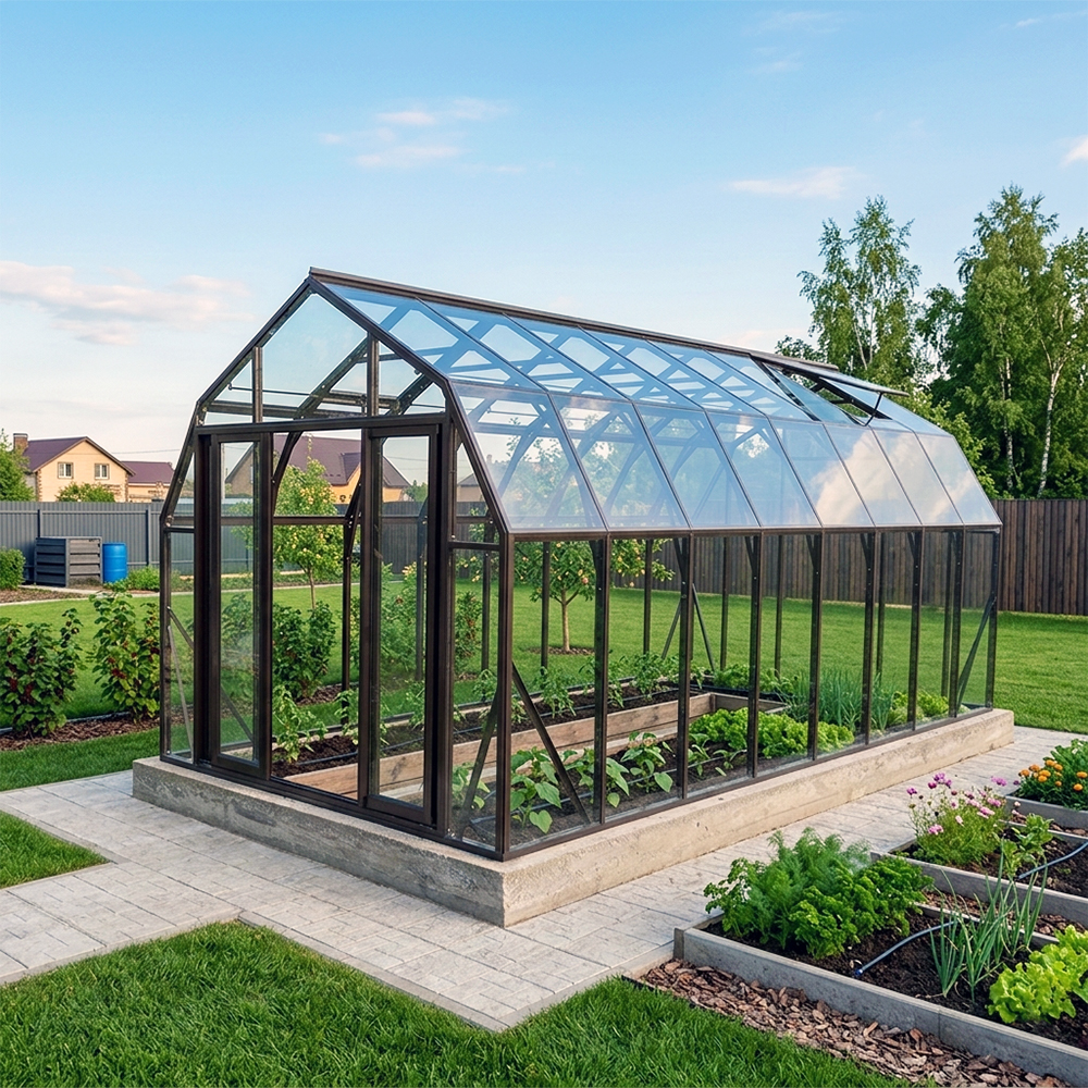 Прочная и красивая теплица CRISTALIKA Compact с продуманным внутренним объемом, которую можно с комфортом разместить на небольшом участке, придомовой территории или в палисаднике.