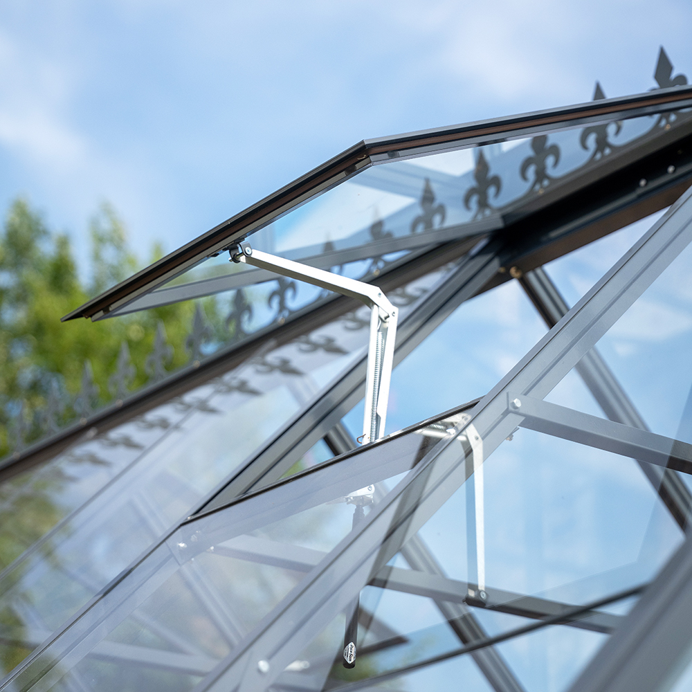 Модель ESTRELLA – это теплица с увеличенной высотой. Такая конфигурация стала возможна за счёт уменьшения угла в коньке конструкции. Благодаря такому углу, верхний скат теплицы стал более приспособлен для ускоренного самостоятельного схода снега, который даже не успевает скапливаться на крыше.