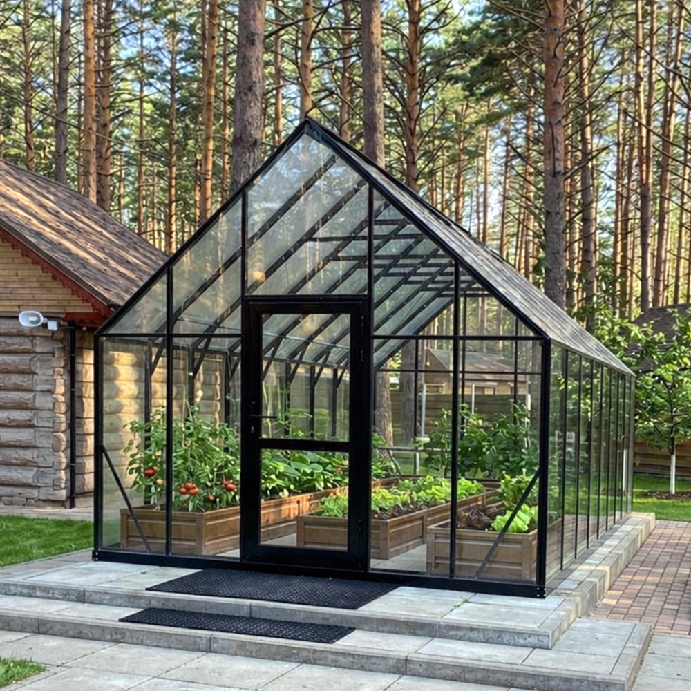 Одна из самых популярных моделей. Внутреннее пространство позволяет выращивать высокорослые сорта томатов, огурцов, перца без ограничения роста. Благодаря остроконечной крыше, угол которой 90 градусов, снижается нагрузка на каркас теплицы, приводит к нулевому риску деформации и разрушения теплицы в зимний период. ЭСТРЕЛЛА 3000 сочетается с любым стилем ландшафтного дизайна, являясь его доминантой.