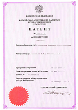 Получены первые патенты на уникальные конструктивные элементы теплиц.2001